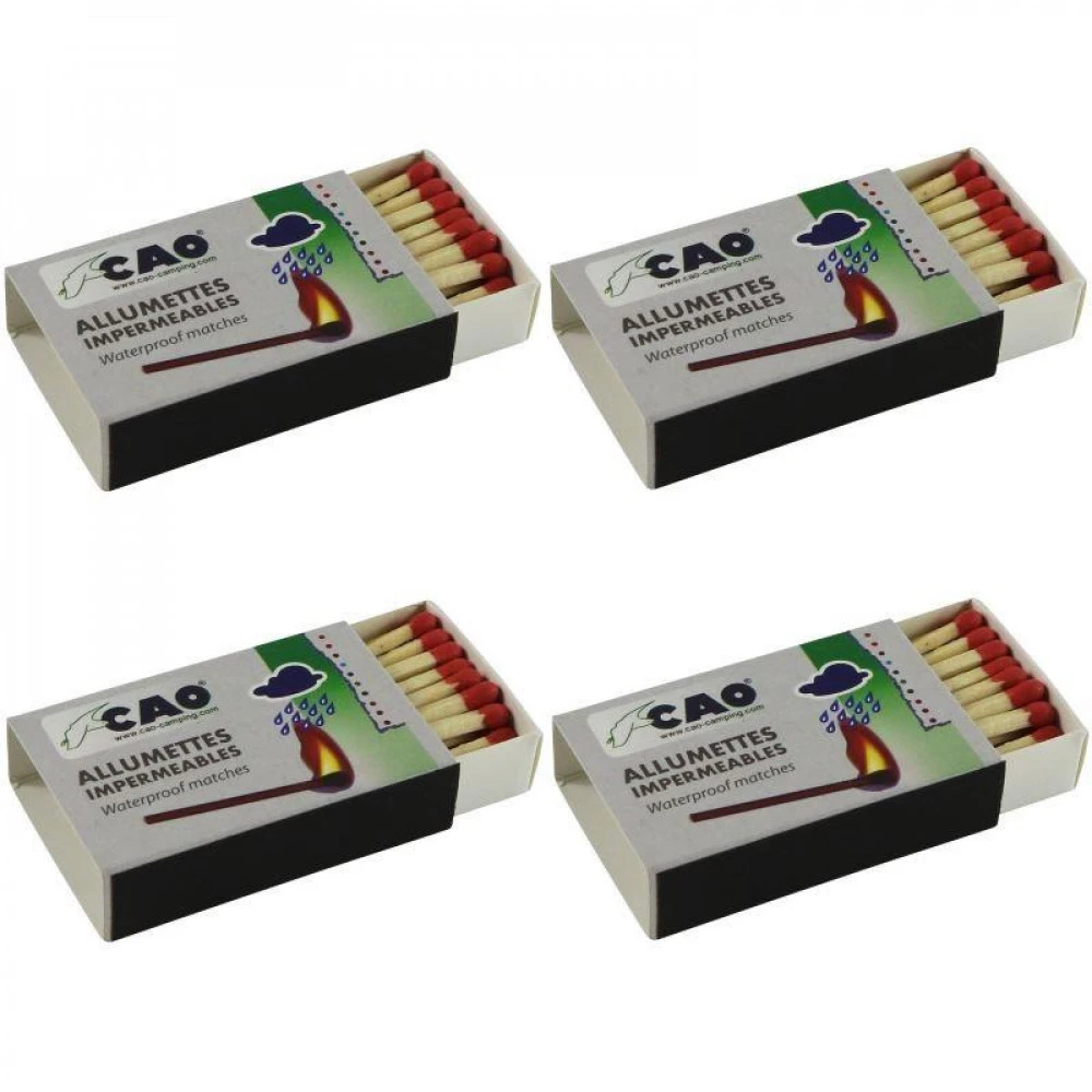 Les allumettes imperméables CAO, aussi appelées allumettes de sûreté, fonctionnent par tous les temps, y compris pluie et vent. Achat fort utile lorsqu’il s’agit d’allumer votre réchaud ou un feu de camp en conditions difficiles, ces allumettes tout temps constituent un élément essentiel parmi votre matériel de randonnée, trek, camping, survie. Elles sont vendues en lot de 4 boîtes avec grattoir.