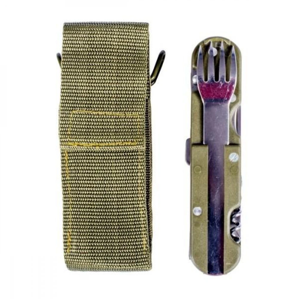 Couteau multifonctions haute qualité CAO OUTDOOR modèle Bivouac comprenant les couverts (cuillère et fourchette) pour le repas au camping, marche ou randonnée.