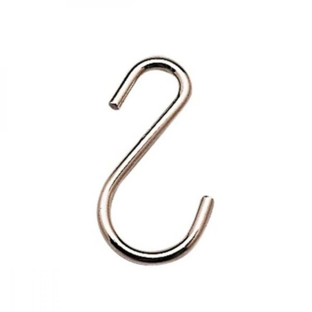 Crochet métallique en acier nickelé CAO OUTDOOR en forme de S de 60 x 46 mm sur ø 4 mm pour les toiles de tente de camping ou randonnée. Lot de 5 pièces.