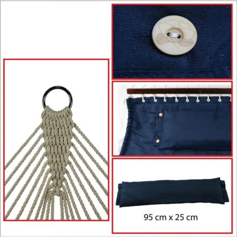 Hamac en coton et rembourrage polyester CAO OUTDOOR Duo pour deux personnes, idéal en plein air au camping, bateau ou camping-car.