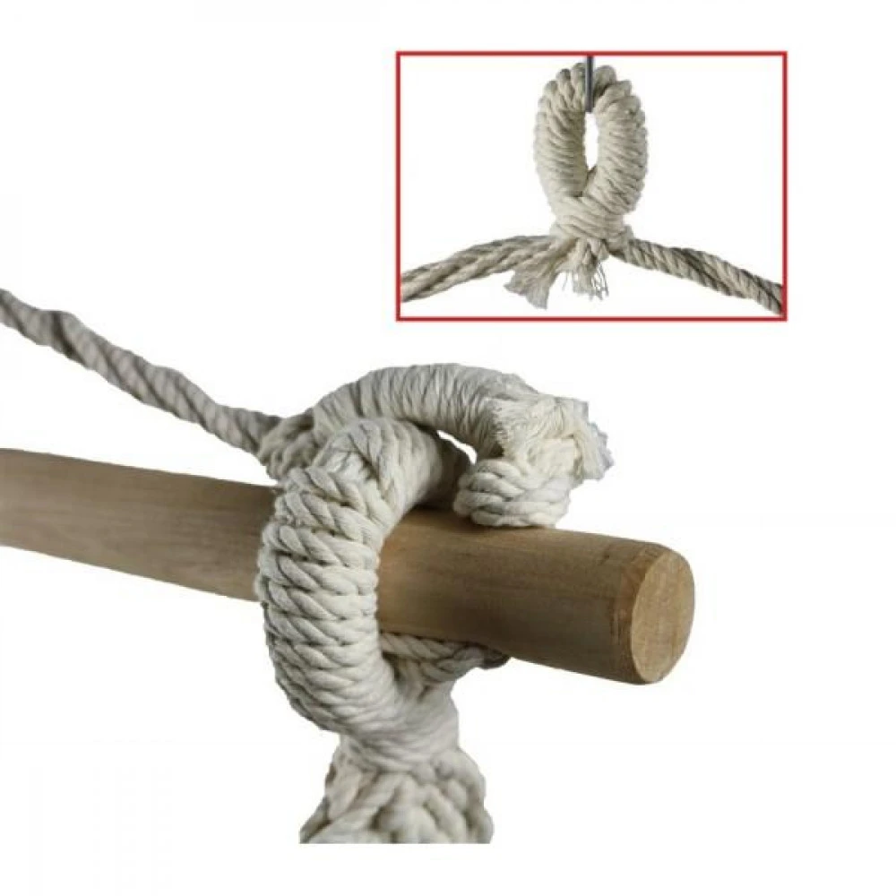 Hamac chaise position assise CAO OUTDOOR avec écarteur bois et tissu coton idéal pour le plein air au camping, en bateau ou camping-car.