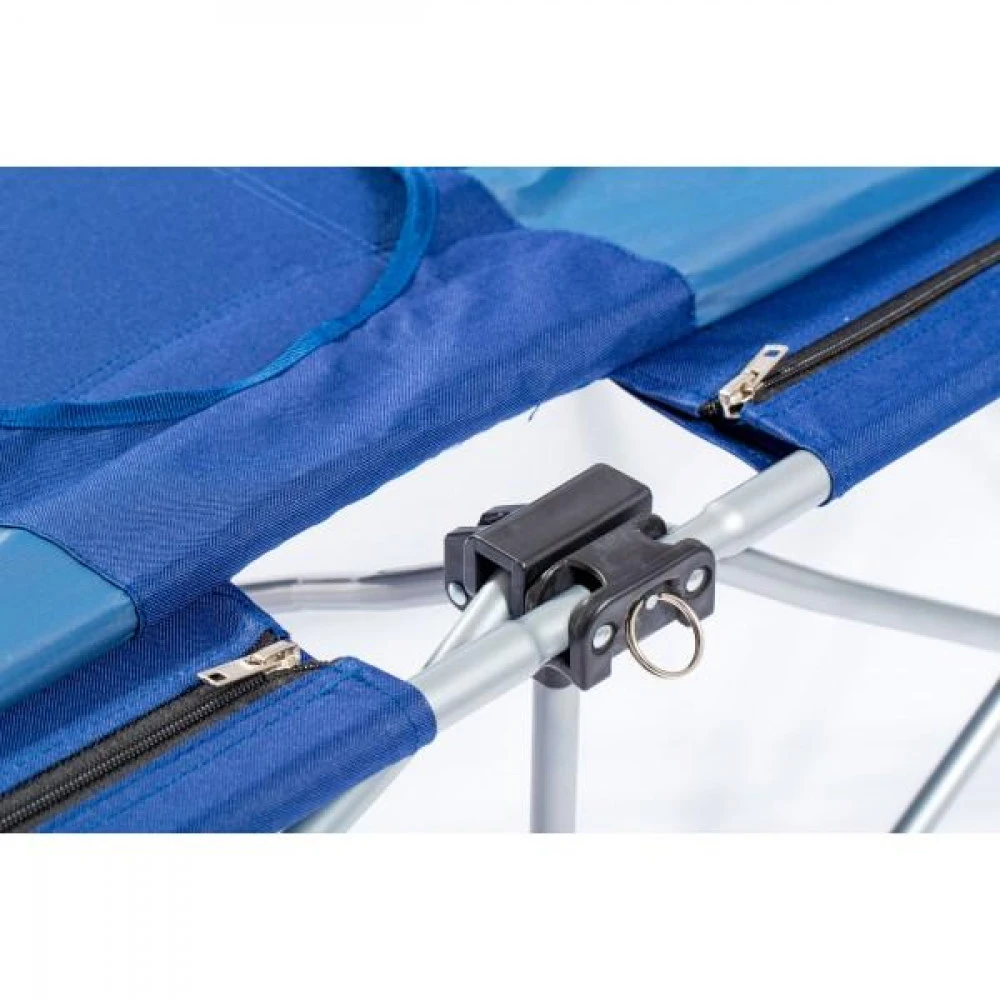 – Poids : 8,2 kg- Dimensions : 192 x 70 cm- Hauteur : 41 cm- Dimensions plié : 112 x 20 x 22 cm- Matériau : tubes en acier et toile polyester- Coloris : bleu