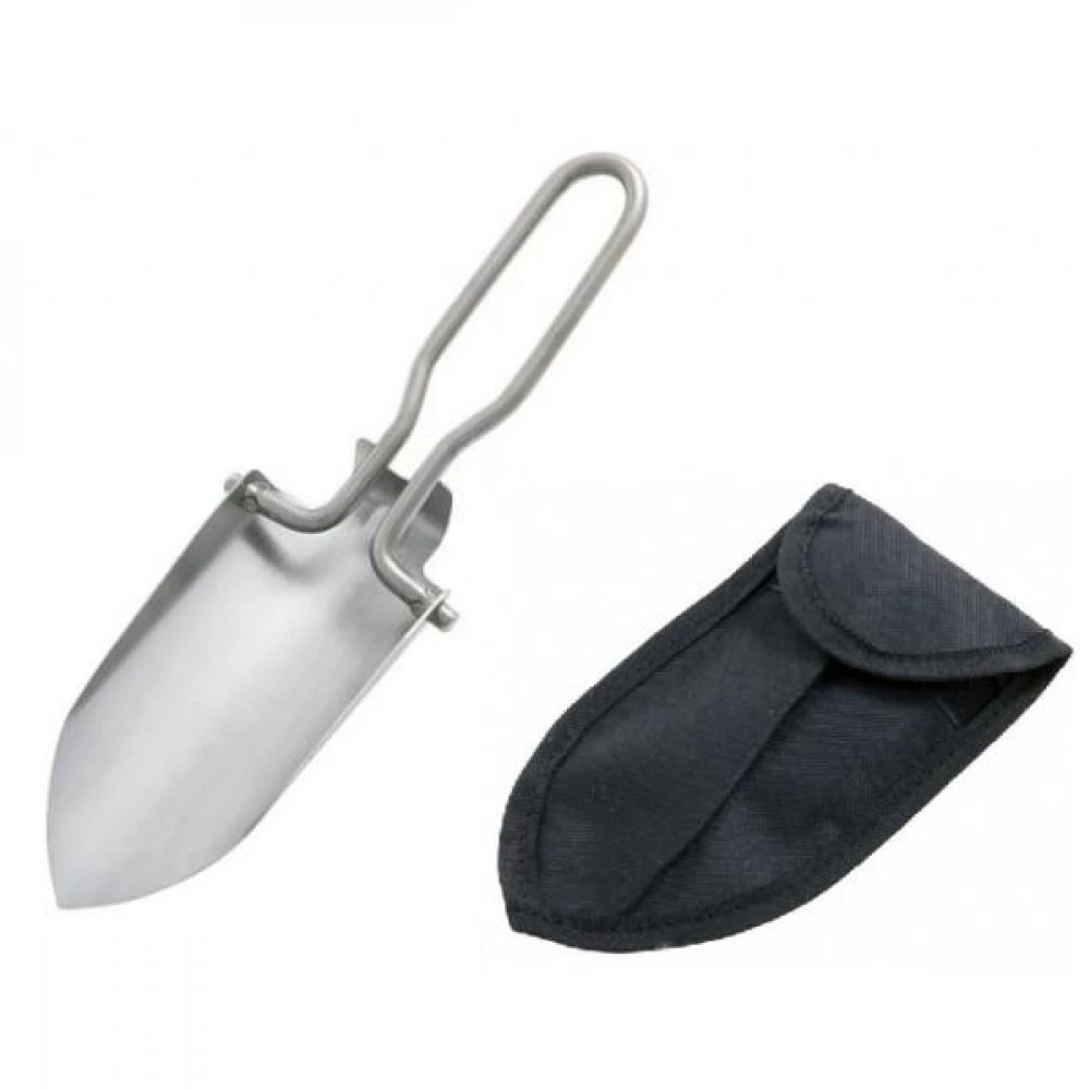 Mini pelle en acier inox CAO OUTDOOR avec manche repliable et étui pour l’équipement au camping et en randonnée.
