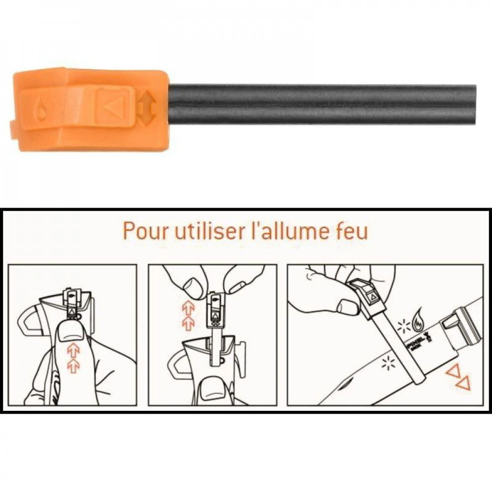 L’Opinel n°12 Explore s’utilise autant comme couteau de survie ou comme couteau polyvalent. C’est un couteau pliant qui intègre notamment une pierre à feu, un sifflet et un crochet coupant de type coupe-ceinture. Il y a également un passe-lanière pour l’accrocher n’importe où. Manche robuste de 15 cm en polyamide et lame puissante de 10 cm en acier inoxydable avec bague de sécurité. Poids : 160 g.