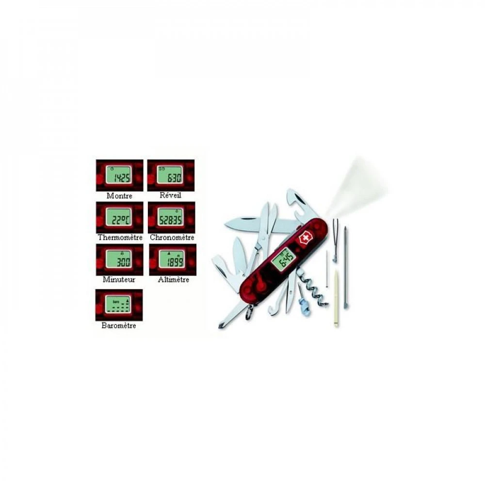 Véritable concentré du savoir-faire de Victorinox, le couteau suisse Traveller Lite présente un manche de 91 mm et un éventail de 27 fonctions réparties sur 16 pièces. Il comporte des fonctions rares : altimètre, baromètre, thermomètre et lampe. Versatile, le Victorinox Traveller Lite se destine à l’aventure, au voyage au quotidien. Un cadeau original et utile, haut de gamme.