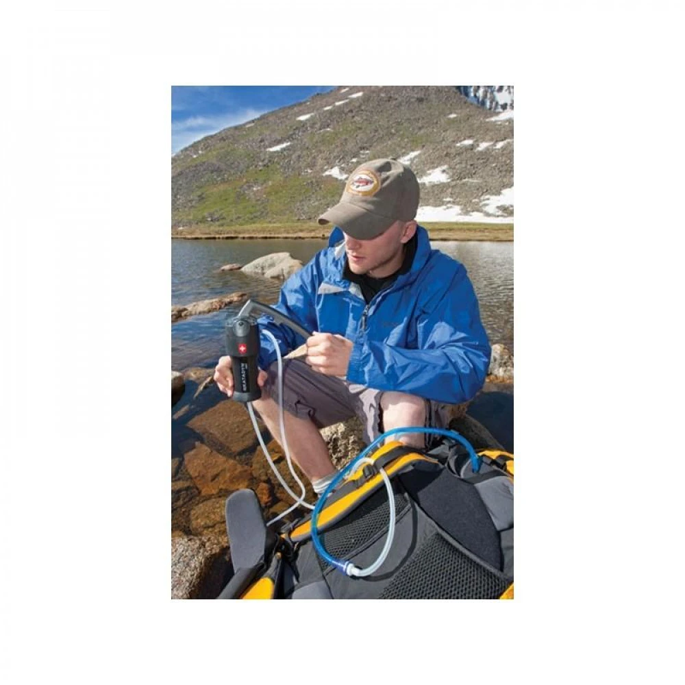 Compact, solide, léger, facile à utiliser, le filtre purificateur Katadyn Vario fait partie des systèmes de filtration d’eau les plus polyvalents du marché : il permet de se débarrasser de tout type de micro-organisme présent dans l’eau. Vous transformez ainsi une eau non potable (provenant d’une rivière, d’un lac ou autre) en eau potable : achat idéal pour la randonnée longue et la survie.