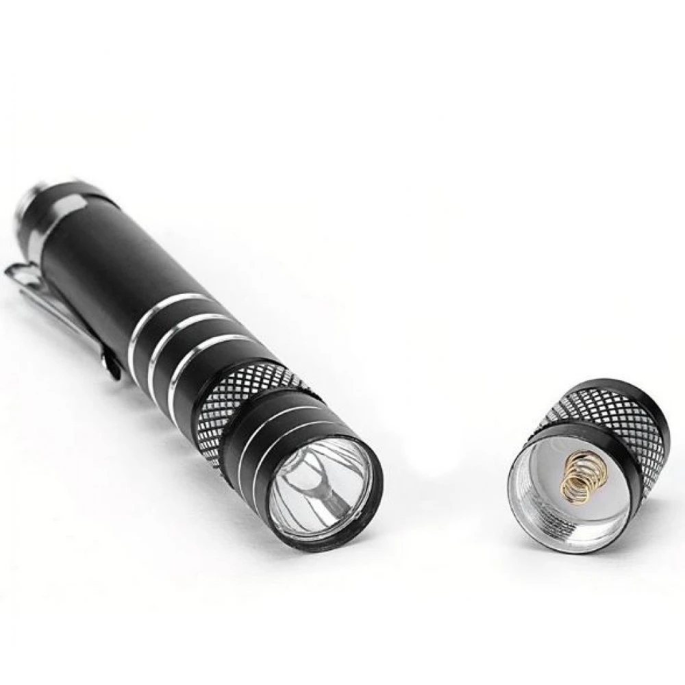 Dotée d’un faisceau large, elle fonctionne avec deux piles AA (non fournies)