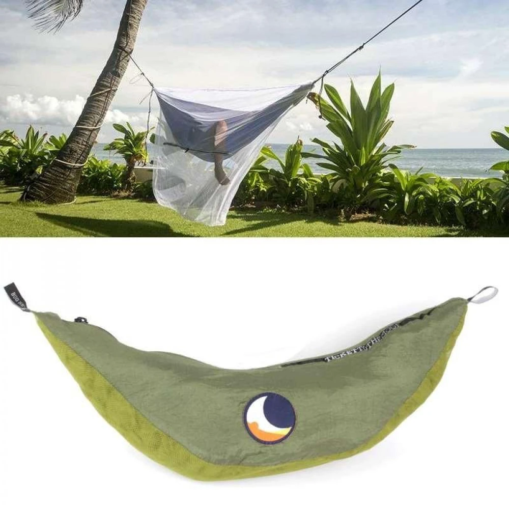 La moustiquaire de hamac Ticket To The Moon 360° ne laisse passer aucun moustique, aucun insecte : la protection ultime dans le cadre d’un bivouac avec hamac. Cette moustiquaire est compatible avec les hamacs pour 1 ou 2 personnes, toutes marques confondues. Elle est de forme cocon et entoure totalement votre hamac, sans barre contraignante. Poids : 450 grammes. Maillage fin : 81 trous par cm2.