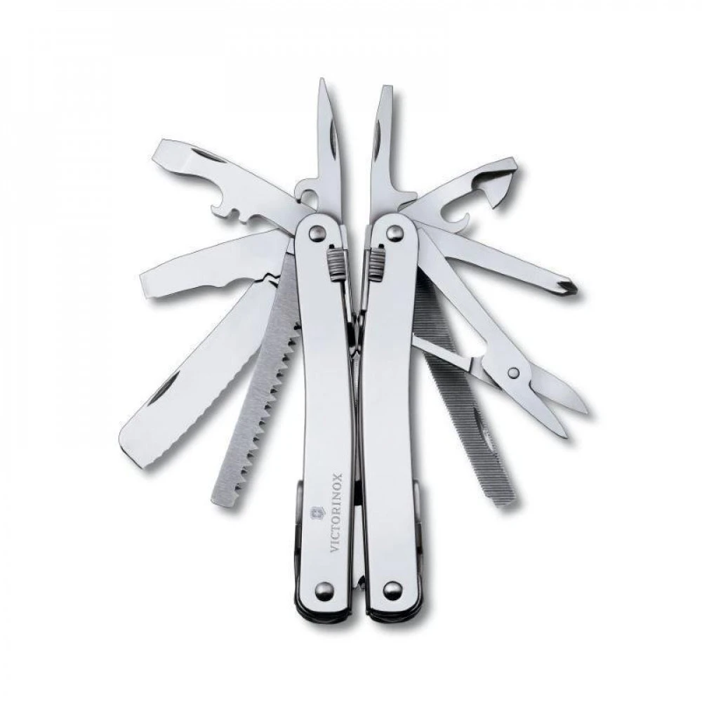 L’outil multifonction Victorinox Swisstool Spirit a été élu meilleur produit de sa catégorie. Acier inox, 26 fonctions réparties sur 11 pièces, système breveté de blocage, le Victorinox Swisstool Spirit est prêt à répondre à toutes les nécessités. Remarque : cadeau idéal pour les professionnels, artisans et bricoleurs. Cet outil multifonction est livré avec un étui en cuir Victorinox.