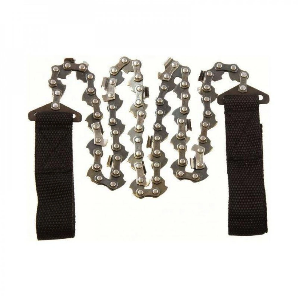 La scie chaine à main Highlander Hand Chain Saw est une véritable scie chaine de survie avec une chaine puissante de type tronçonneuse et 2 poignées souples. Son grand avantage : elle est bien plus compacte qu’une scie classique. C’est une scie chaine solide qui peut s’emporter et se ranger n’importe où. La longueur de chaine atteint 65 cm. Volume de rangement : 10 x 6 x 1 cm. Poids : 125 g.